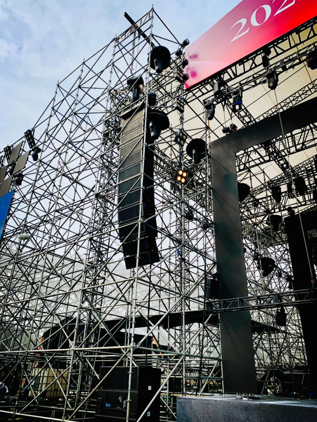 音樂節(jié)的音響系統(tǒng)使用了Meyer Sound LEO家族旗艦——LEO線陣列揚(yáng)聲器,并采用Yamaha Rivage PM10作為OB調(diào)音臺,CL5作為返聽調(diào)音臺。
