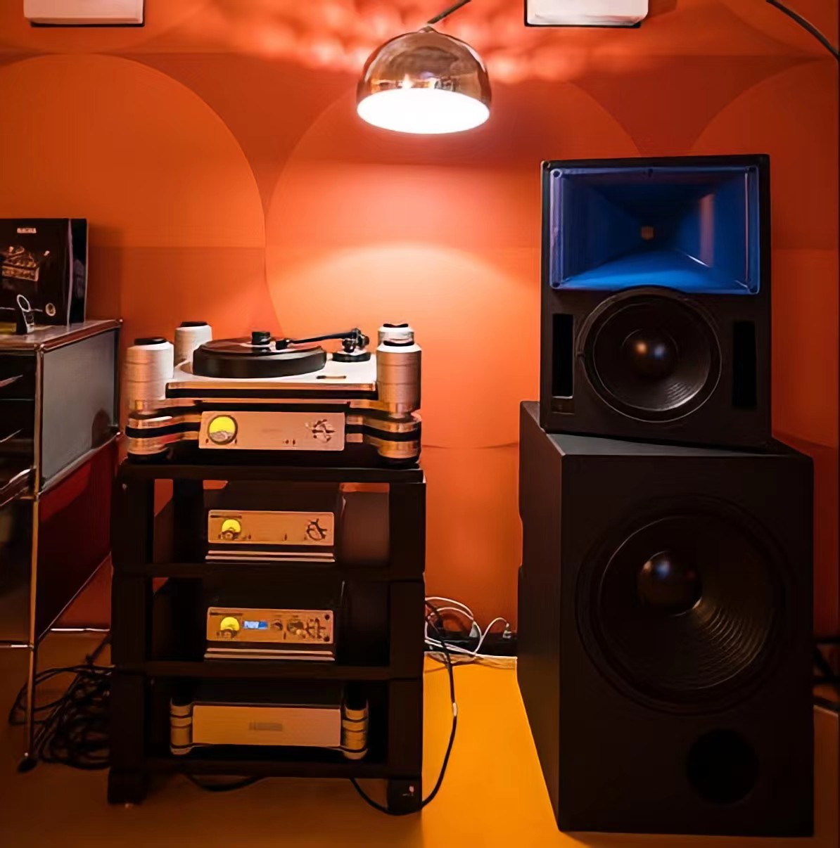 例如,圖書館內(nèi)設(shè)有一個黑膠唱片播放室,配備了 Meyer Sound 精致的藍號角(Bluehorn System)錄音棚監(jiān)聽音箱。藍號角采用先進的數(shù)字處理技術(shù)和專有算法,能夠高精度平坦地重制音樂信號中全頻段的相位響應(yīng)。