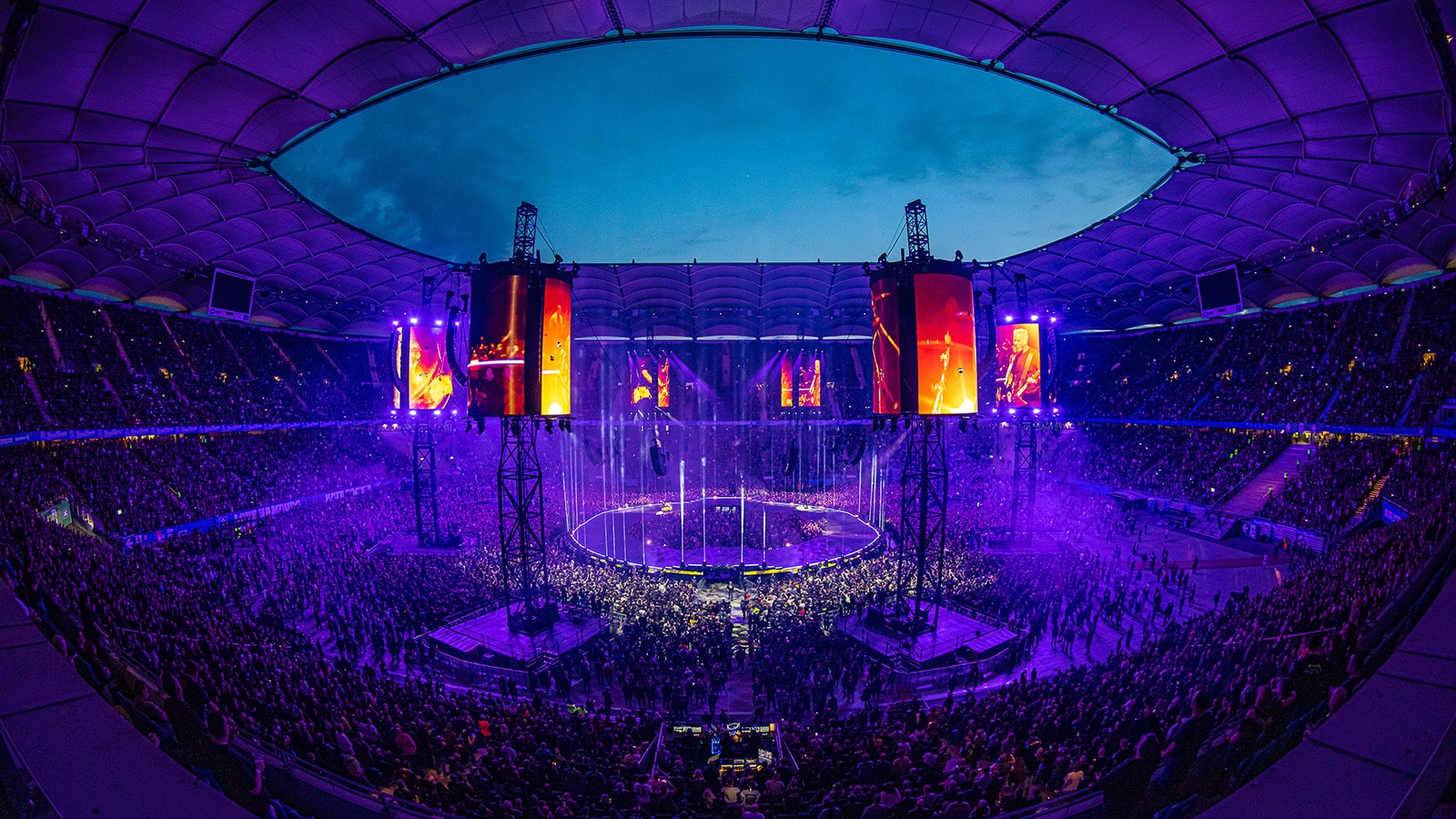 Metallica 是一支充滿創(chuàng)造性的實力派金屬樂隊,被譽(yù)為最杰出的搖滾樂隊之一。最近,其為期兩年的“M72世界巡演”在歐洲拉開帷幕,極富動態(tài)的完美音響效果助力 Metallica 演出再創(chuàng)輝煌。巡演全程,由 288 只 PANTHER 大型線性線陣列音箱組成的 Meyer Sound 擴(kuò)聲系統(tǒng)為現(xiàn)場營造了廣闊的全頻立體聲聲景,讓全場觀眾縱享沉浸式演出體驗,這也是首次采用如此多的 PANTHER 配置擴(kuò)聲系統(tǒng)。