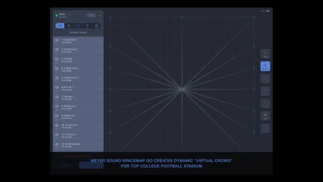 “十萬名球迷不會產(chǎn)生平坦,靜態(tài)的聲音,”大學(xué)體育場概念的發(fā)起人之一Rob Snyder解釋說。“聲音就像擁有生命、會呼吸的實體一樣,可以通過推拉來改變。使用典型的分布式PA系統(tǒng)無法實現(xiàn)這一點,但是借助Spacemap Go,我們能夠以史無前例的效果來模擬現(xiàn)場?!?/p>