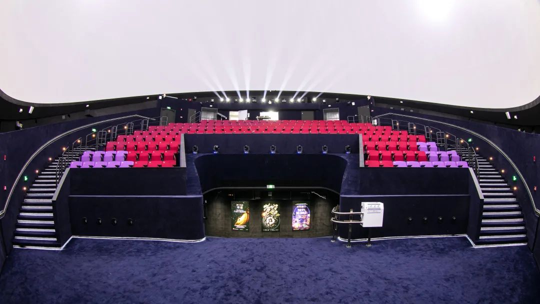 8K球幕影院的球體外直徑30米,內(nèi)徑23米。倒轉(zhuǎn)穹頂?shù)耐胄驮O(shè)計重造了一個觀天的地平線,“屏蔽”城市的喧囂和周遭的一切,使置身其中的人們得以靜觀天空,思考宇宙,設(shè)計師將其稱為“與天對話的地方”。